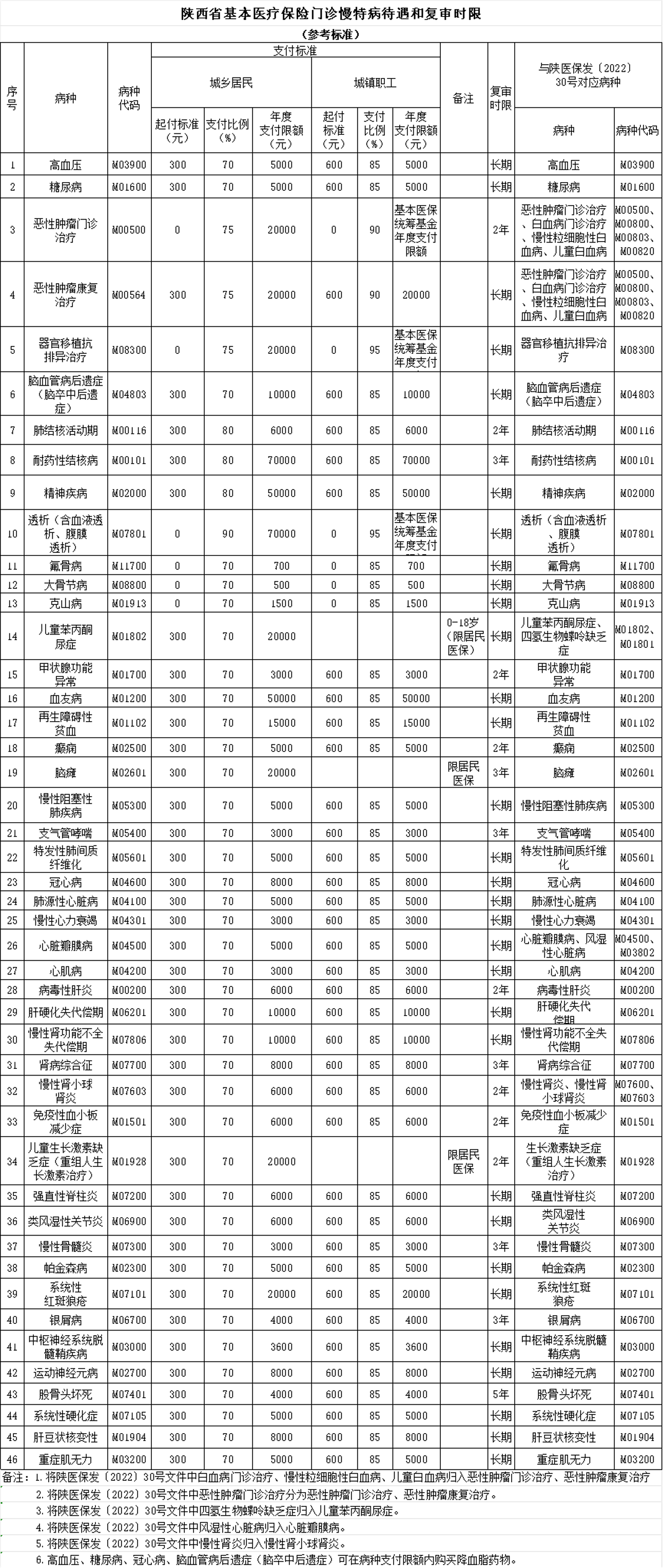 陕西省基本医疗保险门诊慢特病待遇和复审时限