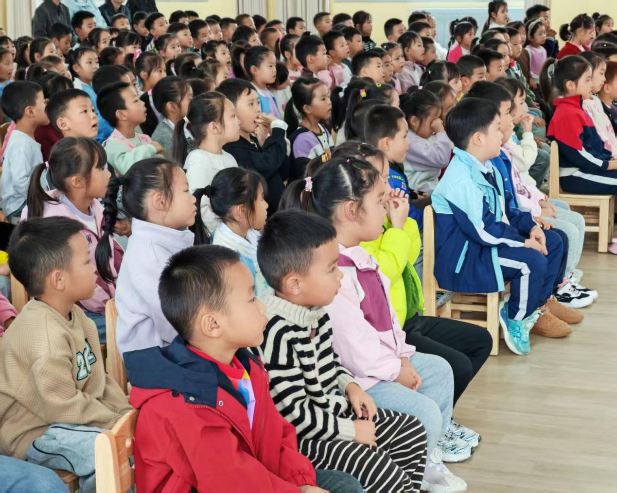 宣讲活动尚未正式开始,小朋友们便在老师的引导下早早有序入座,满心期待地等候健康知识的熏陶。此次宣讲以“保护儿童远视储备量,预防和减少近视发生”为主题,我院五官科医生闫玥、宋鹏围绕近视表现、形成原因、潜在危害、预防方法及应对措施展开详细讲解,引导全体师生从源头重视远视储备保护,有效延缓儿童近视的发生与发展。