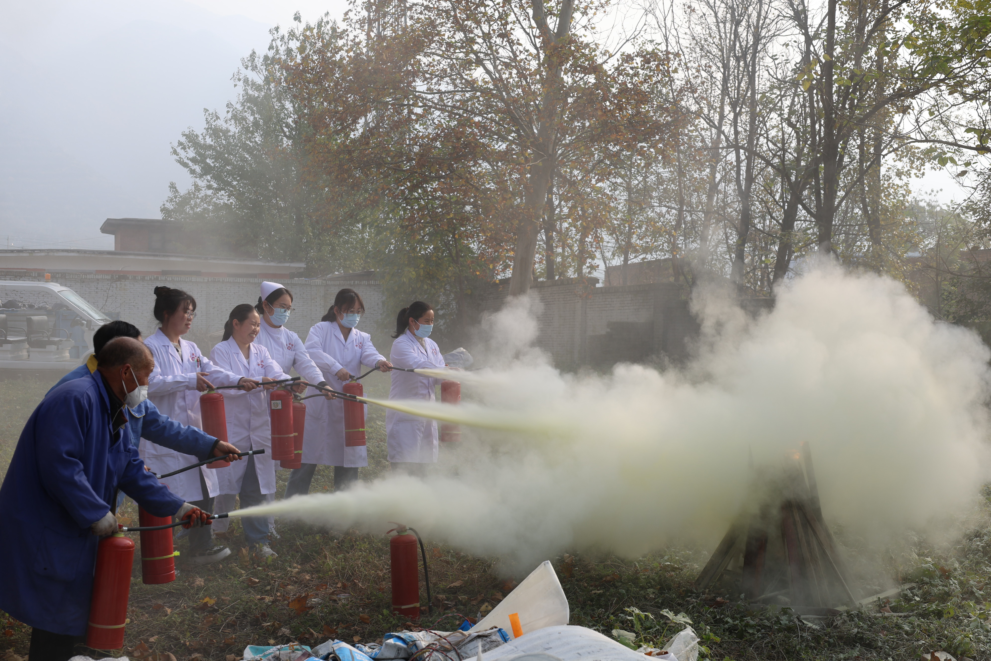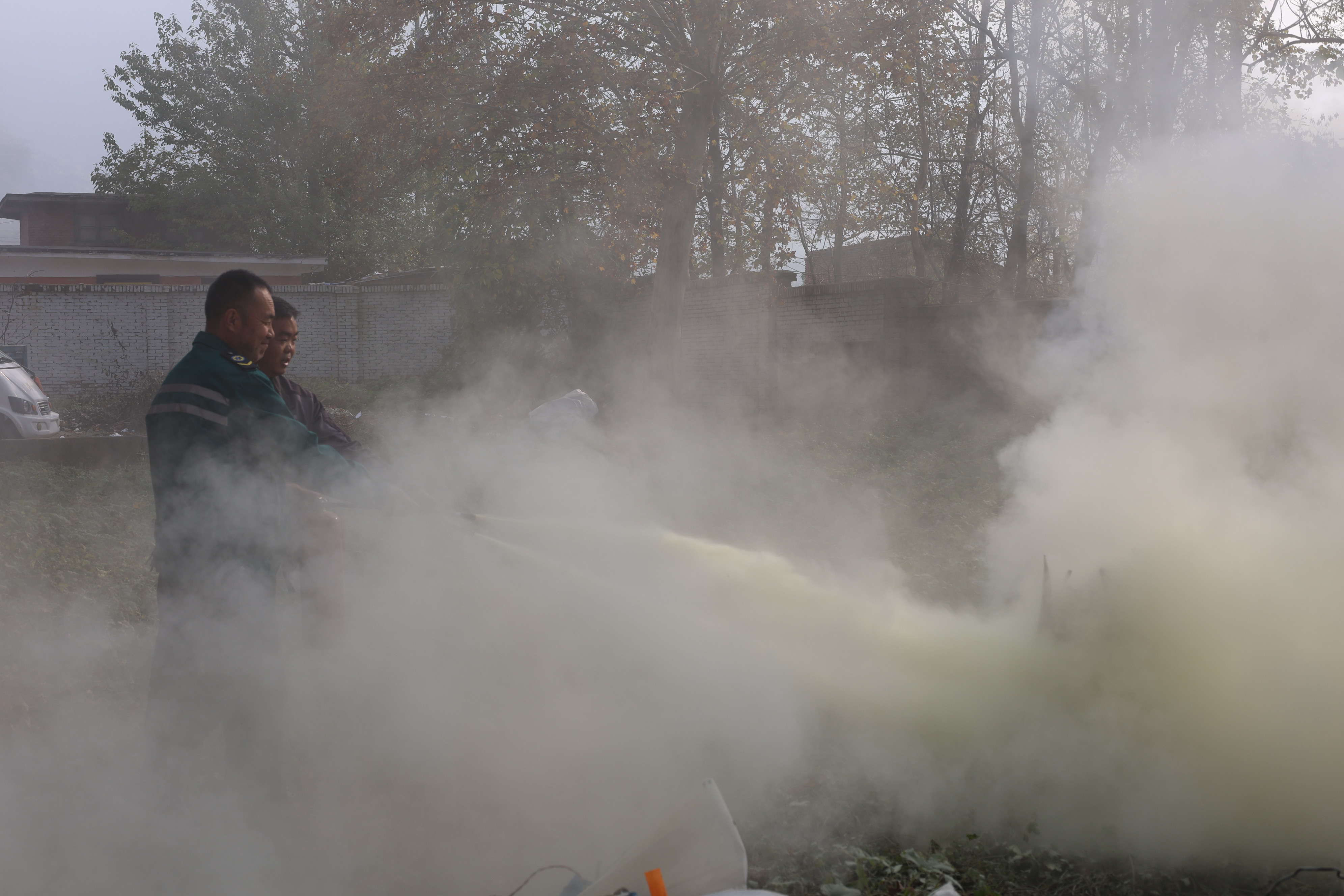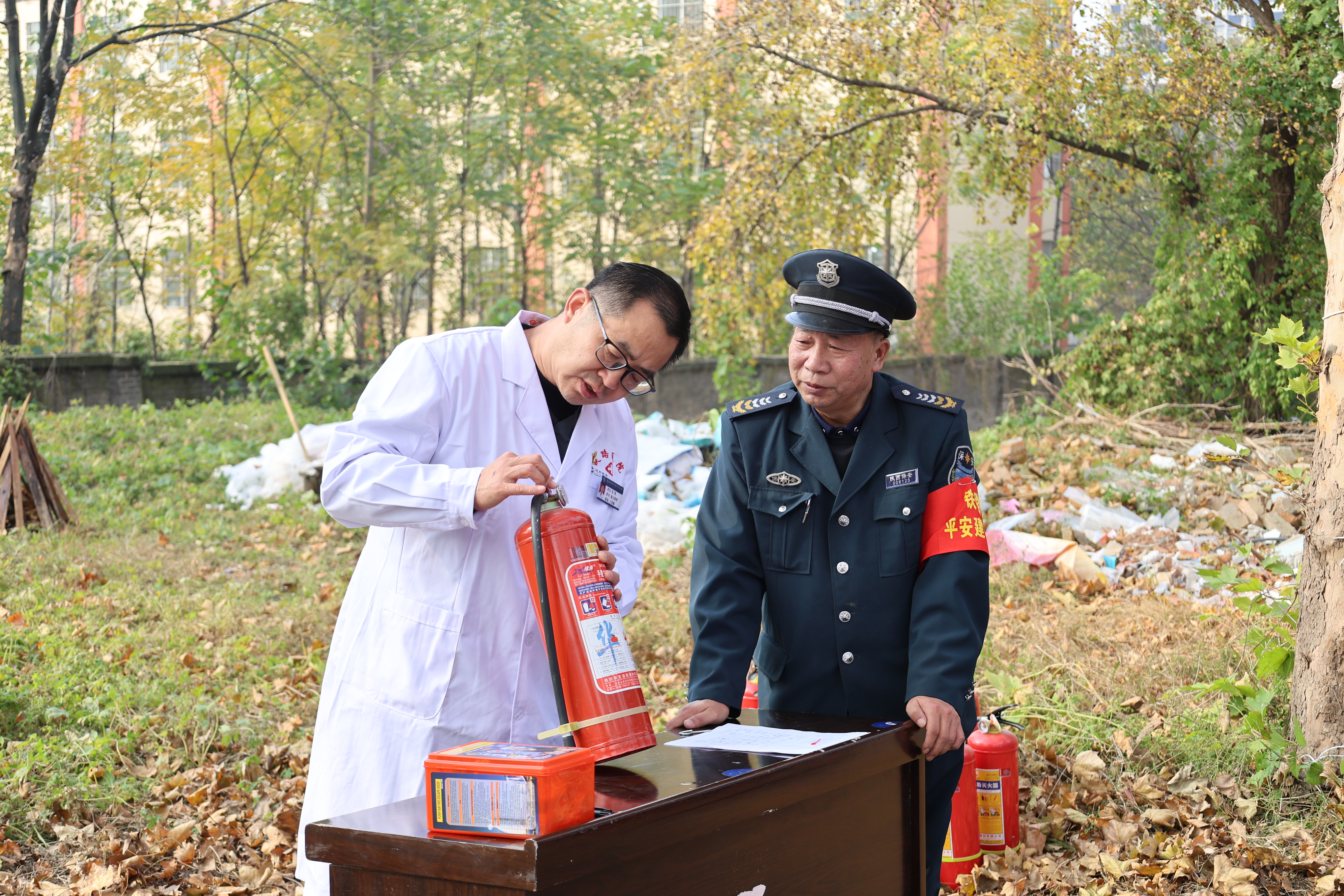 随后,院长助理张凯和保卫科东班长现场示范,详细讲解灭火器、防毒面具的规范使用方法。