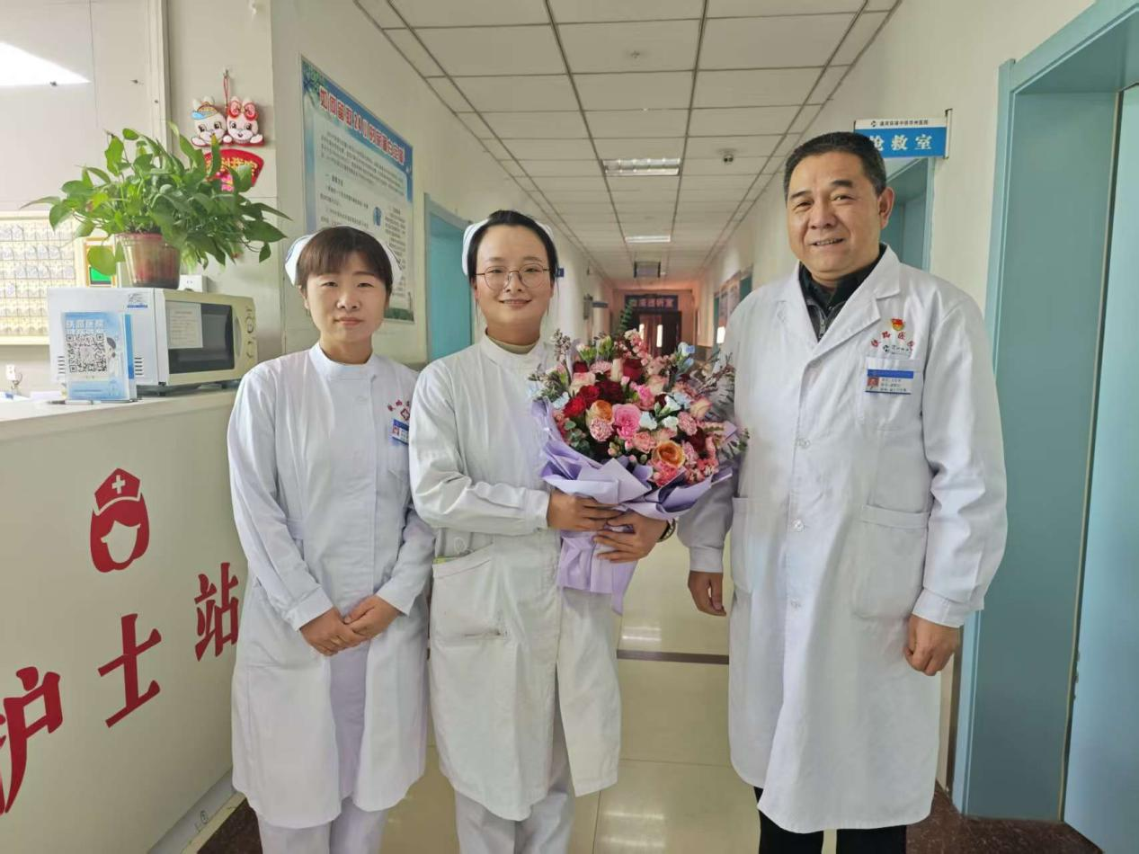 载誉归来之际,副院长关宏弟代表医院,手持工会精心准备的鲜花,专程为获奖护士送上诚挚祝贺,高度肯定了她们在大赛中展现的专业素养与取得的优异成绩。并鼓励全体护理人员以获奖同志为榜样,立足岗位、深耕教研,持续提升护理教学质量与专业服务能力。医院获奖护士表示,将把此次大赛的所学所获运用到实际工作中,发挥榜样示范引领作用,为医院护理事业的高质量发展贡献更多力量。