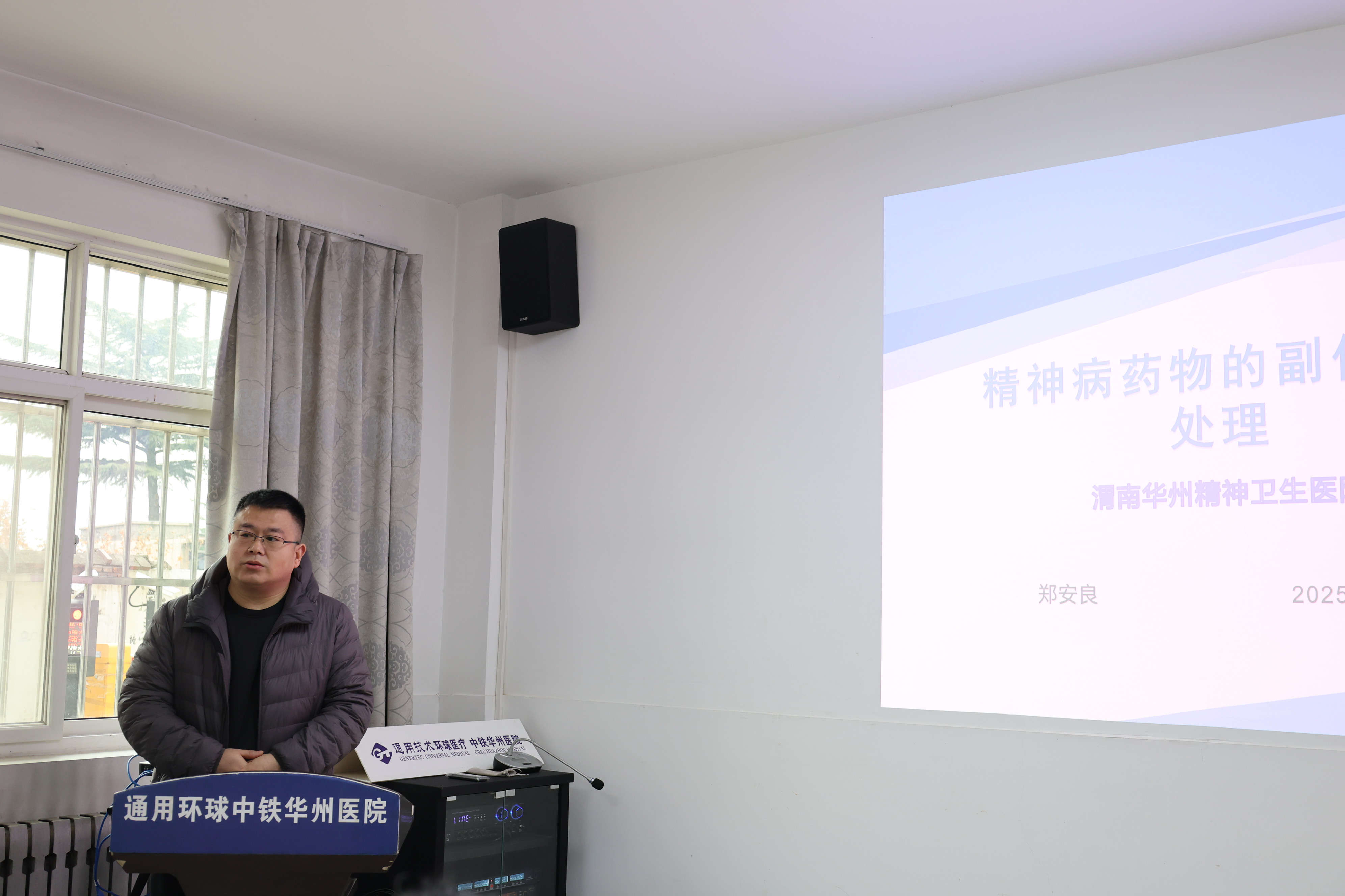 精神卫生专家郑安良会上进行了“抗精神病药物常见副作用”的专题讲座。