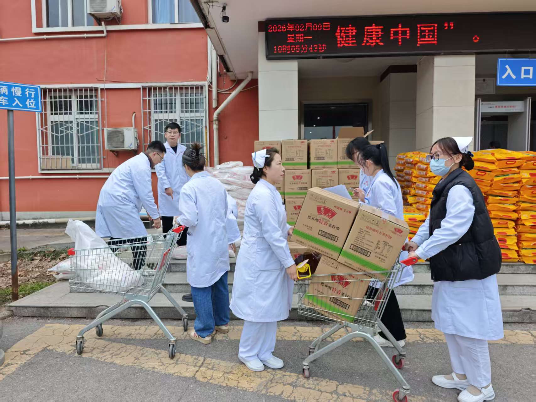 发放现场,工作人员提前到位、分工明确,有序引导大家签到、领取、搬运。领取福利的职工们脸上洋溢着幸福的笑容,相互配合搬运物资,不时交流着节日来临前的期盼与喜悦,一幕幕暖心的场景,汇聚成医院大家庭的温情画卷。