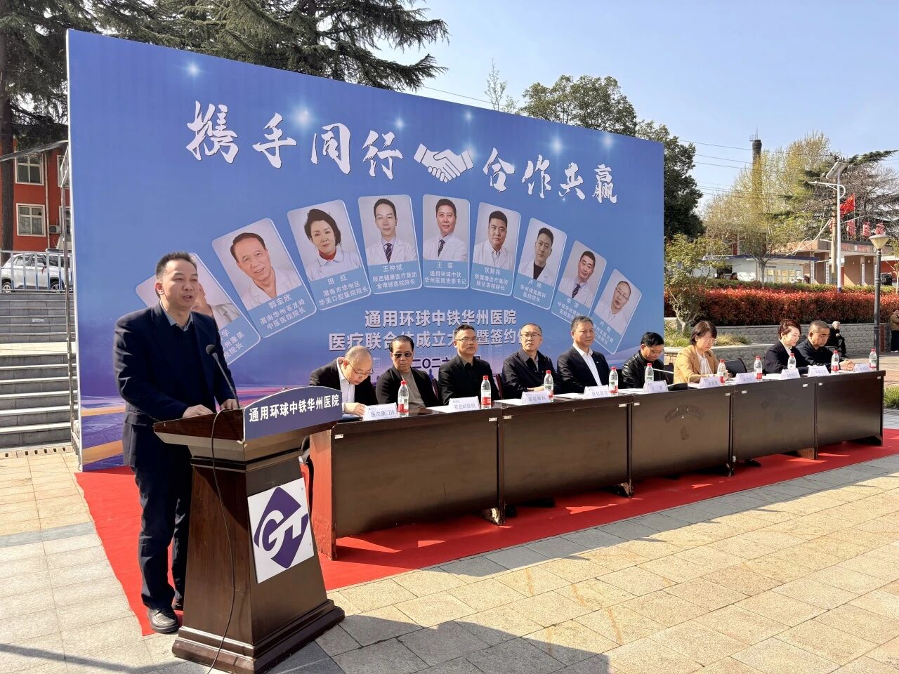 为进一步凝聚医疗行业合力,切实提升地区群众就医服务质效,3月31日上午,由通用环球中铁华州医院牵头的医疗联合体成立大会在医院行政楼前广场隆重召开。华州区卫健局副书记李智勇、体改办主任苏静,杏林镇人民政府及新城社区、阳光社区、华盛社区相关负责同志出席活动。陕健集团陕化职工医院、金堆城医院,华州区华美口腔医院、瑞视眼科医院、苍龙岭中医医院、康美医院、医次康诊所等医联体成员单位院长及代表,通用环球中铁华州医院领导班子、各科室主任、护士长、医务人员等参加本次大会。